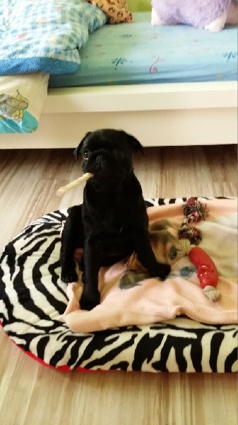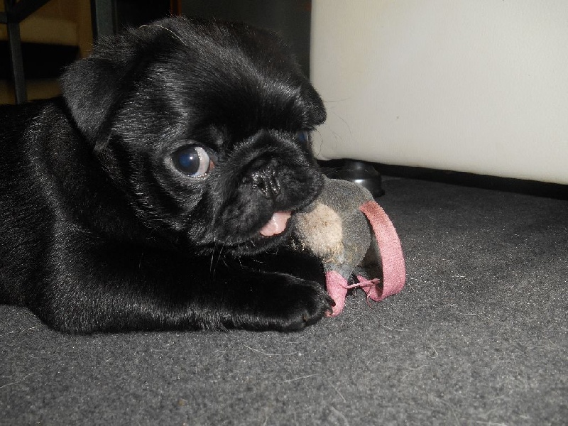 Le petit Cacao vit en région parisienne entouré de Caramel et Biscotte, sa nouvelle famille de carlins.