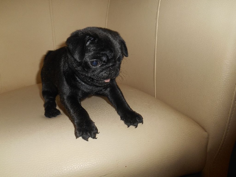 Voici notre première portée, quatre magnifiques chiots noirs, trois mâles et une femelle, issus des meilleurs lignées, nés d'Hermine d'Amour du Temple Ming Kee et de Mult Ch Végas vom Saschen Adel. Nous avons gardé Charlie, et les trois autres bébés ont tous rapidement trouvé une merveilleuse famille avec qui nous restons en contact.